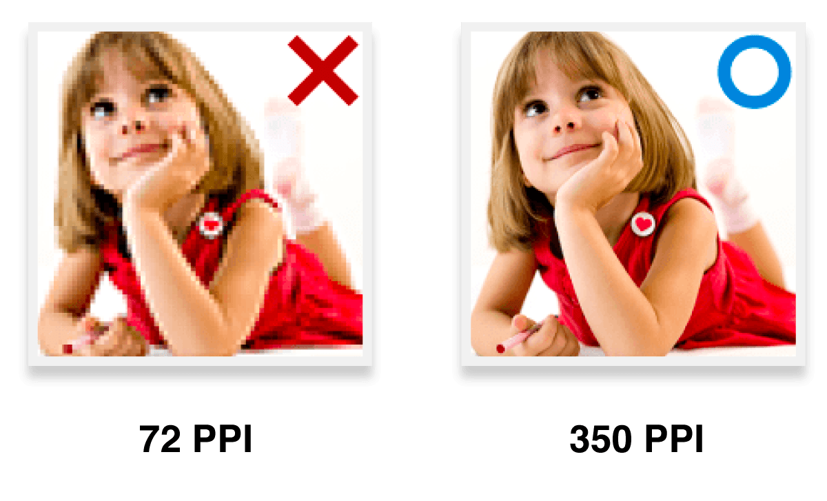低い解像度でも印刷することは可能ですが、350 ppi以上の画像を