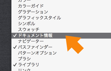 メニューから「ウィンドウ」→「ドキュメント情報」をクリックします。