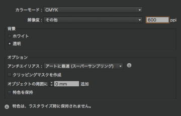 思わぬ印刷不良を招く可能性があるため、ラスタライズ(画像化)していただく必要があります。