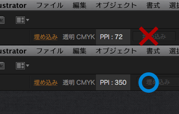 デザインに使用されている写真やイラストなどの画像素材が350 ppiより低い場合、