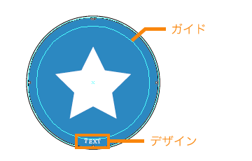 テンプレートには同心二重円のガイドがあります。 内側のガイド線が缶バッジの直径を表し、正面から見た時に見える範囲を示します。